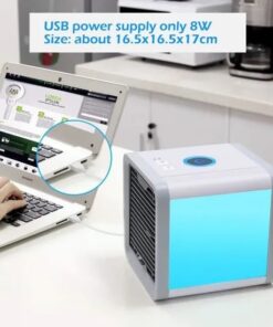 جو المميز يمكنه أن يلطف الجو بسرعة في أي مكان، في المنزل، في السيارة أو في المكتب. يعمل بتكنولوجيا التبريد بالبخار، ببساطة قم بملء الفتحة الجانبية بالماء البارد و أضف معه مكعبات الثلج و قم بوصله بأي قابس أو بمنفذ USB (باور بانك، حاسوب، موقد السجائر في السيارة… الخ) و بعدها قم باشعاله و استمتع بجو حيوي و لطيف.